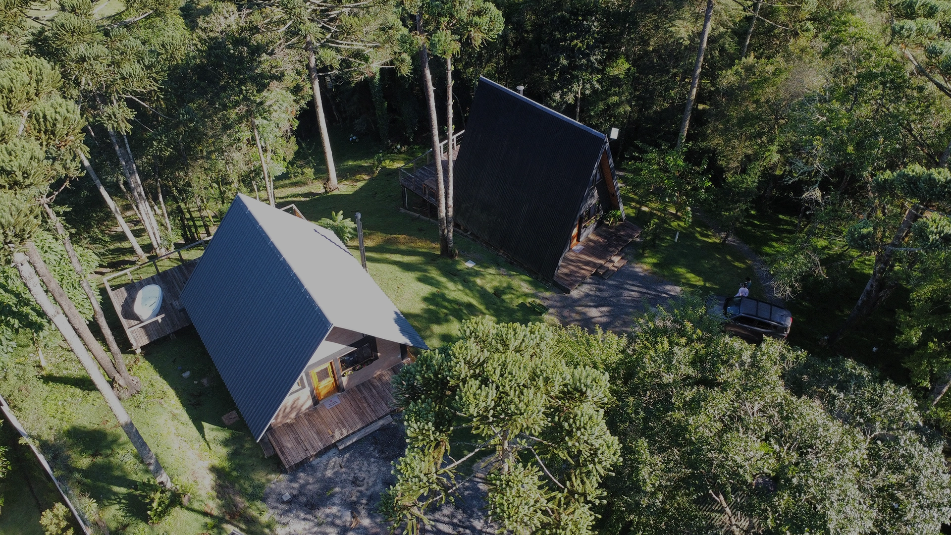 Duas cabanas exclusivas — Cabana Verde e Cabana Azul — com total privacidade, conforto premium e o aconchego perfeito em meio à natureza
